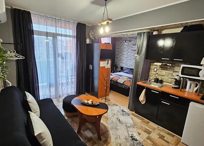 1-pokojowy Studio 67 Słoneczny Brzeg oferuje widoki na basen, a także taras z basenem. Klub plażowy Bedroom znajduje się nie więcej niż 10 min pieszo od apartamentu o powierzchni 40 m², a Park wodny Aqua Paradise znajduje się w 2 km.
